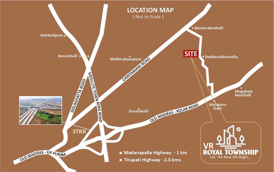 VR Royal Township offers BMRDA and RERA-approved gated community plots in Hoskote with eco-friendly amenities, 52% open space, clubhouse, Vaastu compliance, CC roads, underground cabling, and excellent connectivity to STRR and Old Madras Road.